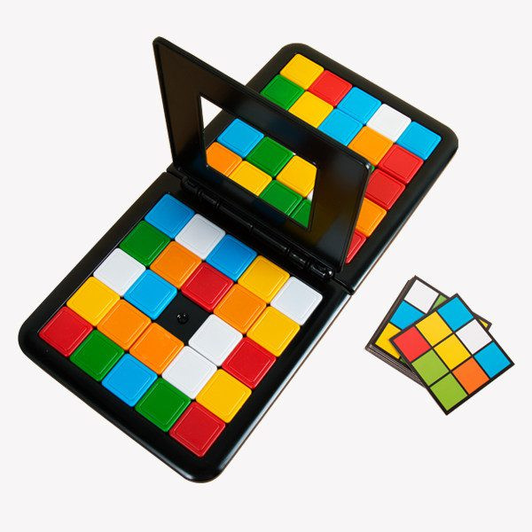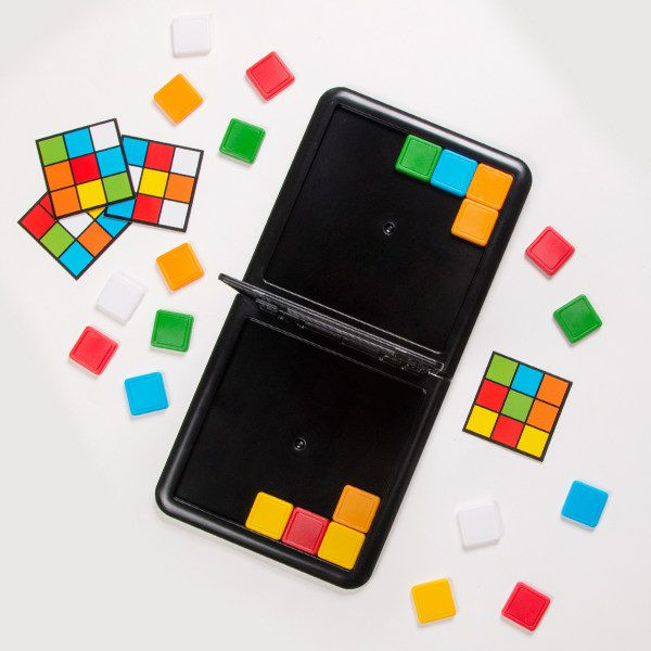 ۲ تا صفحهی بازی، ۱ قاب لولادار، ۴۸ مربع در شش رنگ مختلف، ۱۵ کارت الگوی پشت و رو