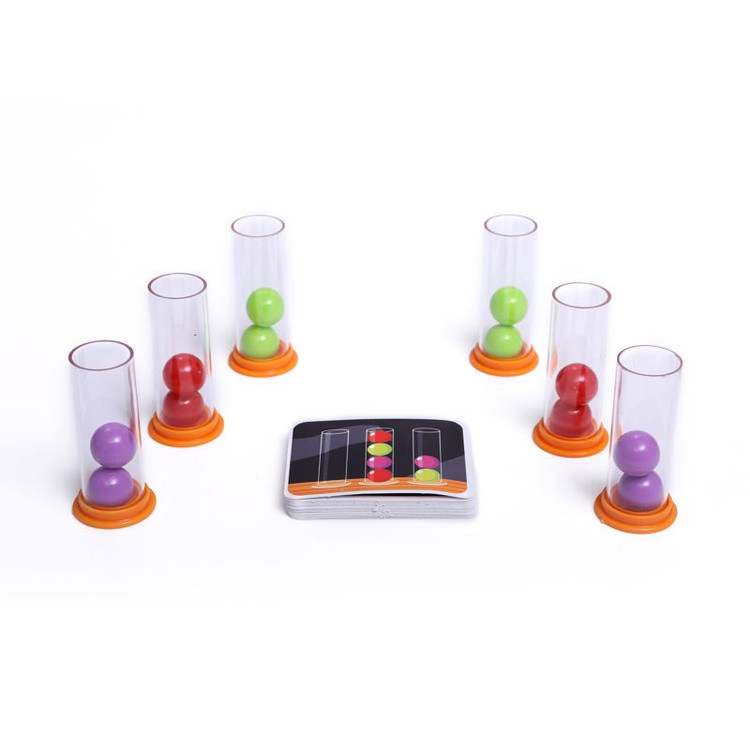 روش بازی ساده ولی چالشبرانگیز است: کارتهای الگو را بُر بزنید و در وسط میز قرار دهید. با رو شدن هر کارت، بازیکنان باید با جابهجایی توپهای رنگی داخل لولهها، آنها را دقیقاً مطابق الگو بچینند. سرعت حرف اول را میزند و اولین کسی که درست بچیند، کارت را به عنوان امتیاز برمیدارد.