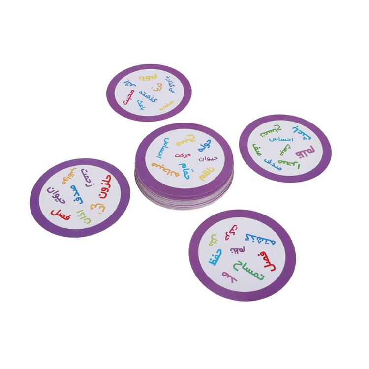 روی هر کارت این بازی هشت کلمه از کتاب فارسی کلاس اول دبستان با رنگهای متفاوت درج شده و بین هر دو کارت دقیقاً یک کلمهی مشترک وجود دارد. بازیکنان باید با سرعت و دقت بالا، آن کلمهی مشترک را پیدا کنند.