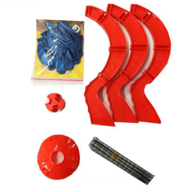 محتویات: ۱ عدد تاس - ۳ عدد پایه - ۹ عدد میله - بادکنک های رنگی