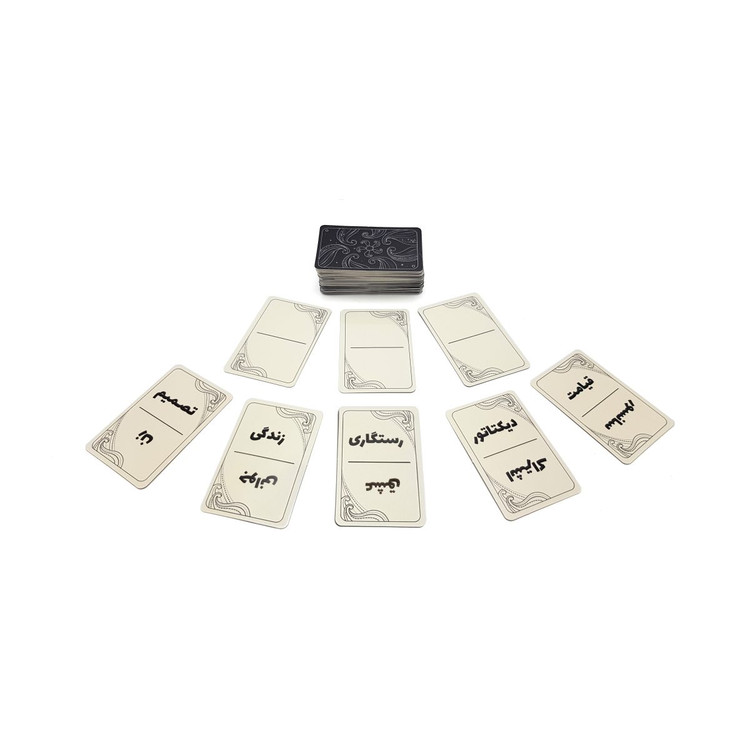 دفترچه راهنمای بازی ۱ عدد صفحه پشت جعبه ۶ عدد صفحه بازیکن ۶ عدد ماژیک ۹۶ عدد کارت تصویر ۱۸ عدد کارت واژهی خالی ۵۴ عدد کارت واژه ۶ عدد مهره (از هر رنگ یک عدد) ۶ عدد مهره (از هر رنگ یک عدد)