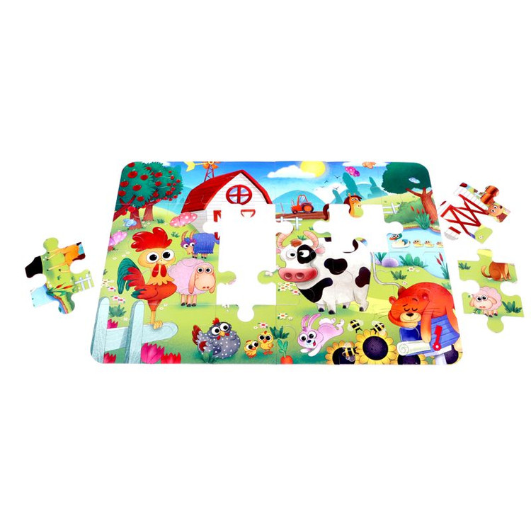 پازل بزرگ در مزرعه چه خبر یک بازی آموزشی و سرگرمکننده است که علاوه بر ایجاد لحظات شاد، به تقویت مهارتهای شناختی، تمرکز، حل مسئله و هماهنگی چشم و دست کودکان کمک میکند. این پازل شامل ۲۴ قطعه بزرگ و مقاوم است که پس از کنار هم قرار گرفتن، تصویری زیبا به اندازه ۷۰×۵۰ سانتیمتر از حیوانات گوناگون مزرعه را شکل میدهد.